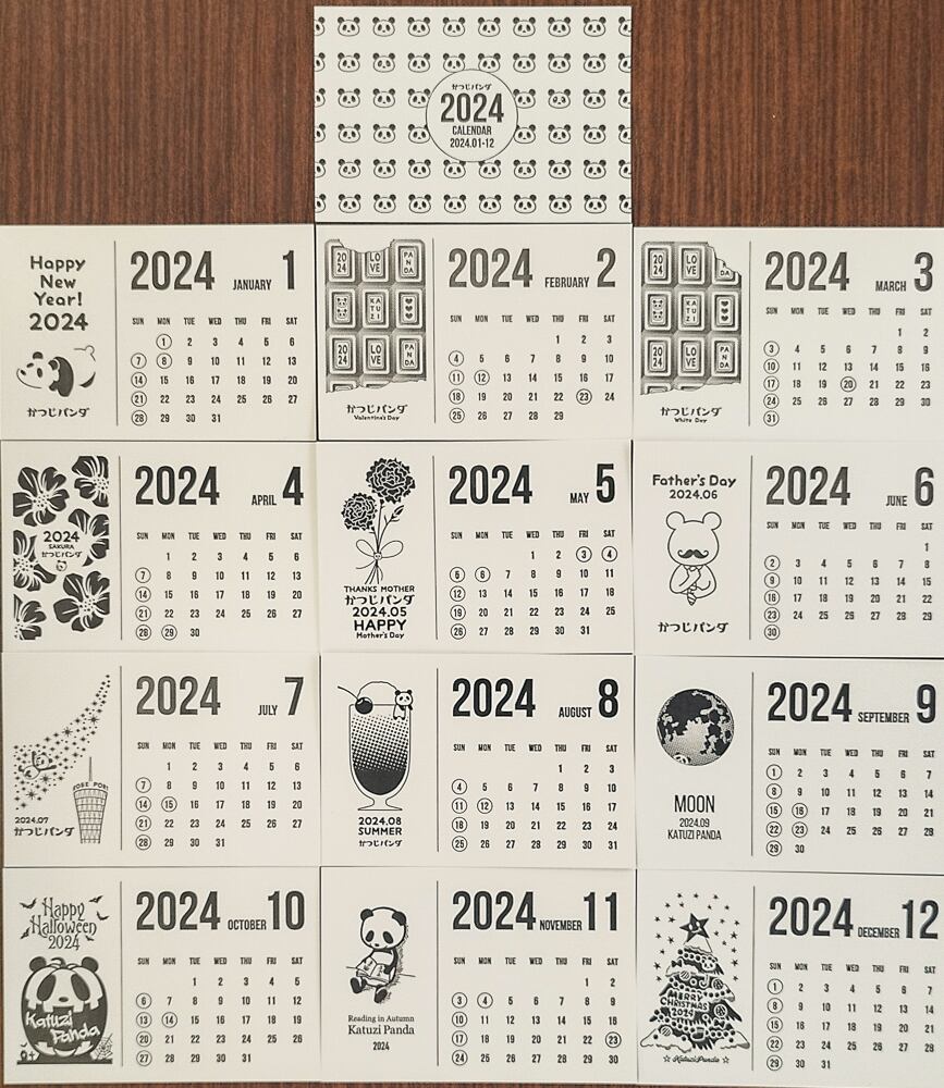 かつじパンダ2024カレンダー 1月~12月