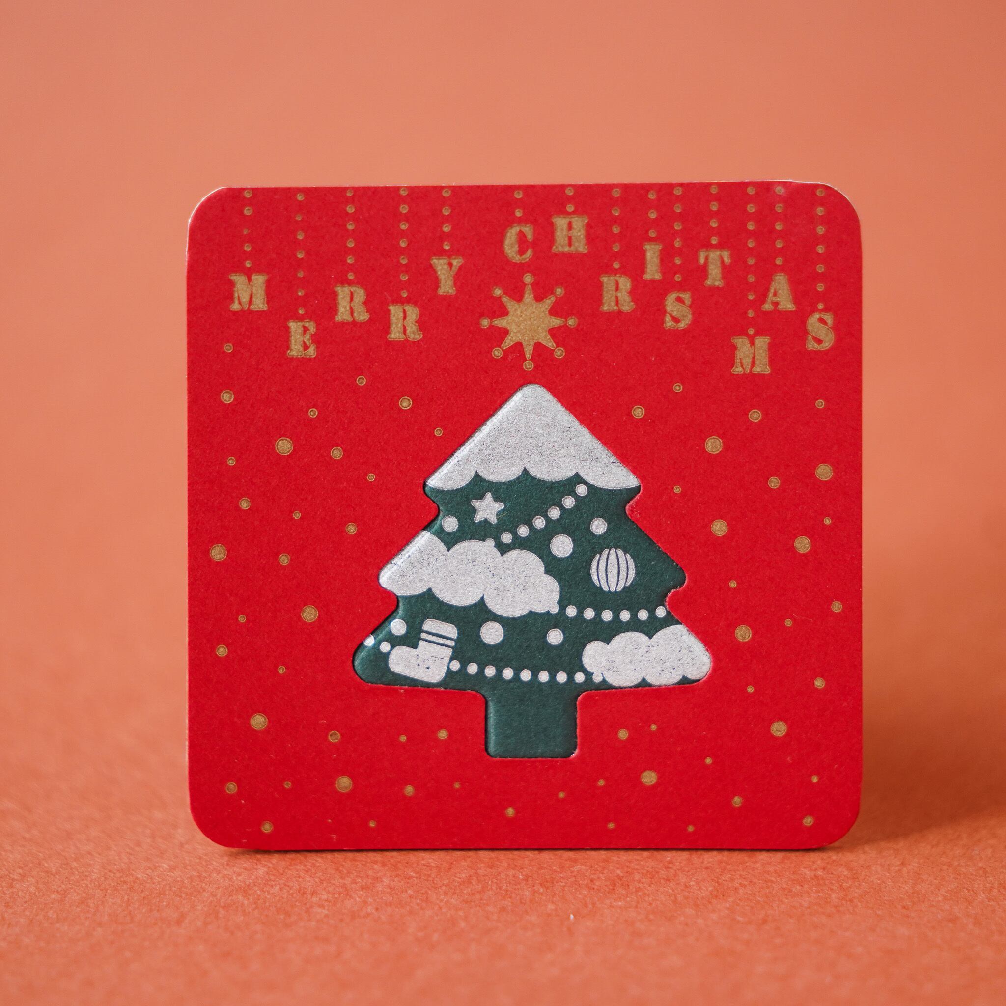 クリスマスを祝う心温まる季節にぴったりな、クリスマスツリーのデザインが施されたメッセージカードです。型抜き加工により立体的で不思議な手触りが楽しめ、贈る相手への特別な想いを伝えることができます。裏面は白紙になっており、自分だけのメッセージを書き込むことができる、思い出を形にするアイテムです。